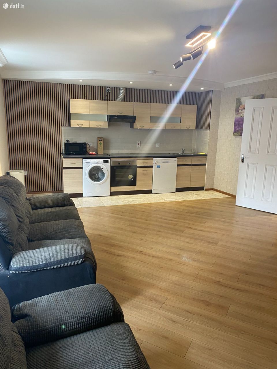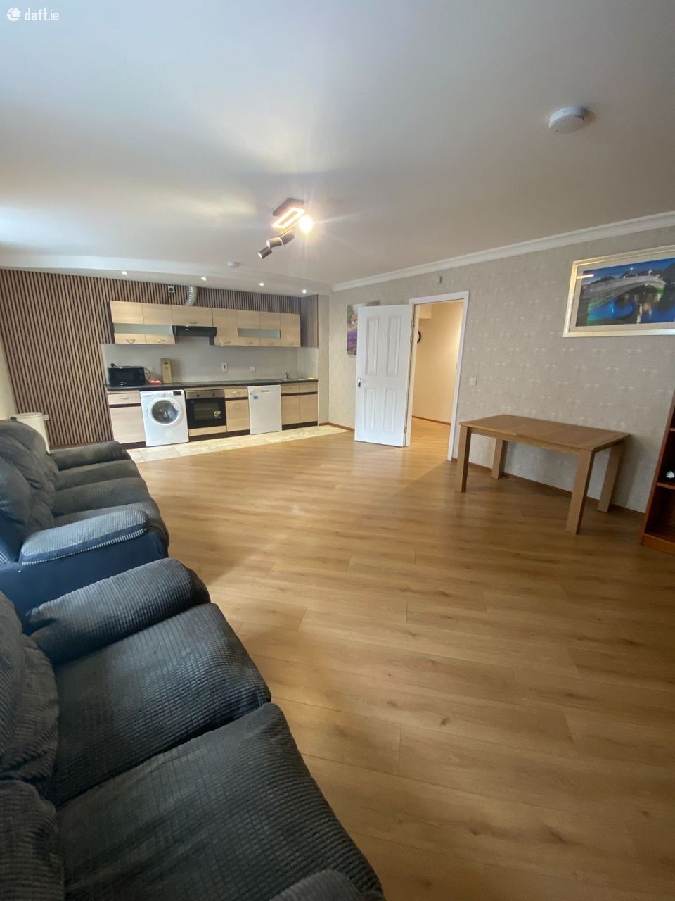 Situated on the first floor, the layout comprises of entrance hall leading to a very spacious open kitchen, dining and living area, 2 double bedrooms, 1 bathroom, 1 utility/office space. Electric heating.